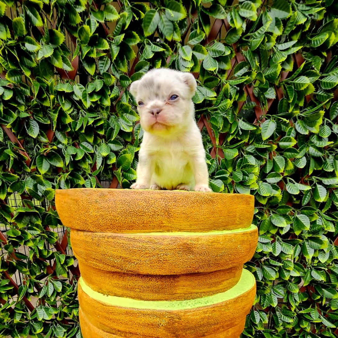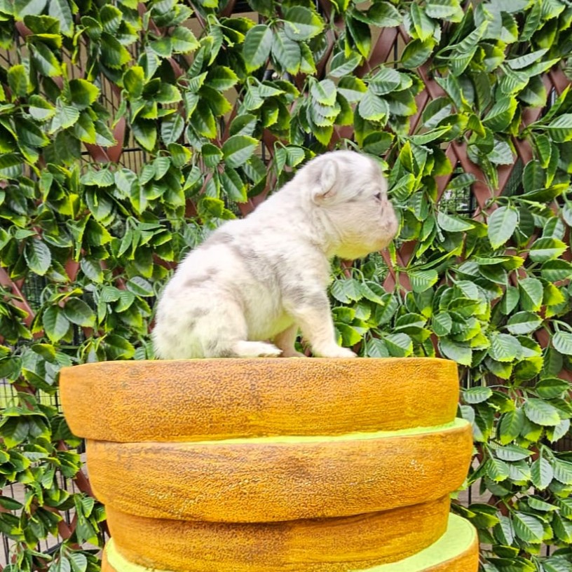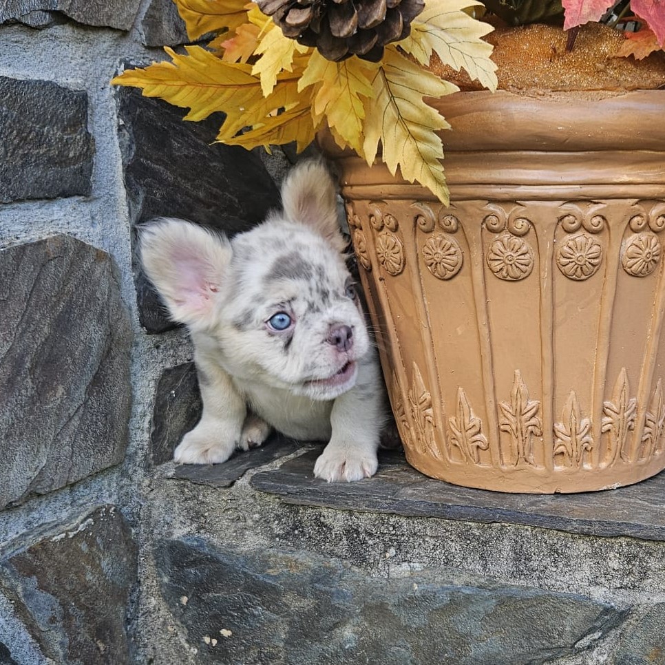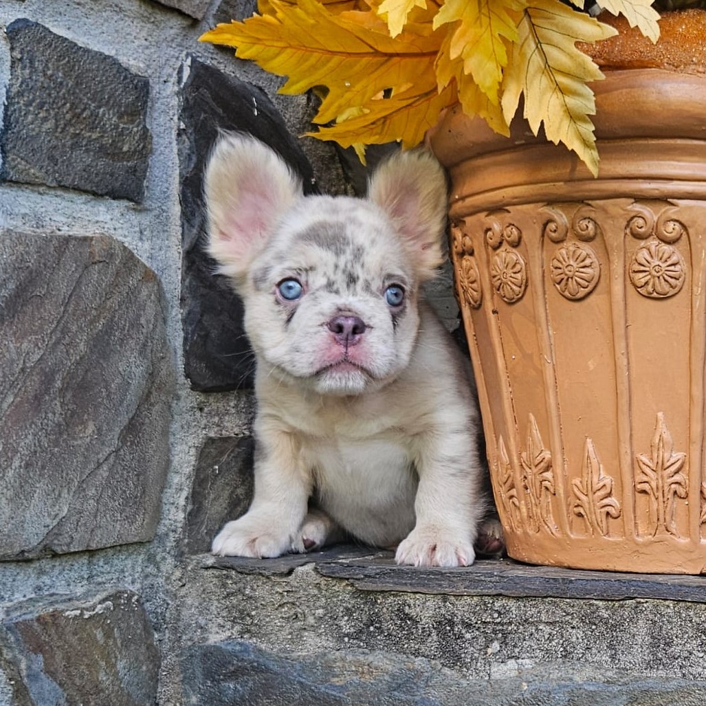 Buttercup X Redhot’s baby.“a dapper little heartbreaker in a white coat with speckles of charm!”