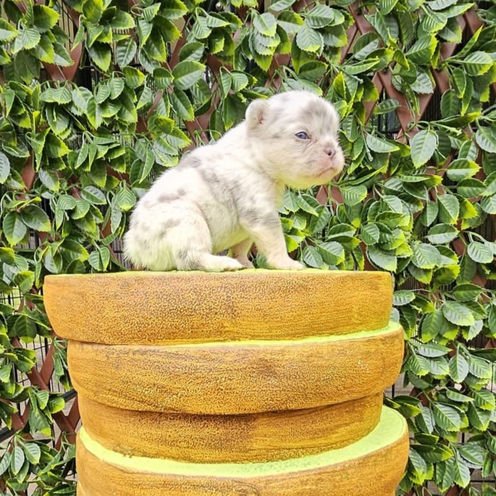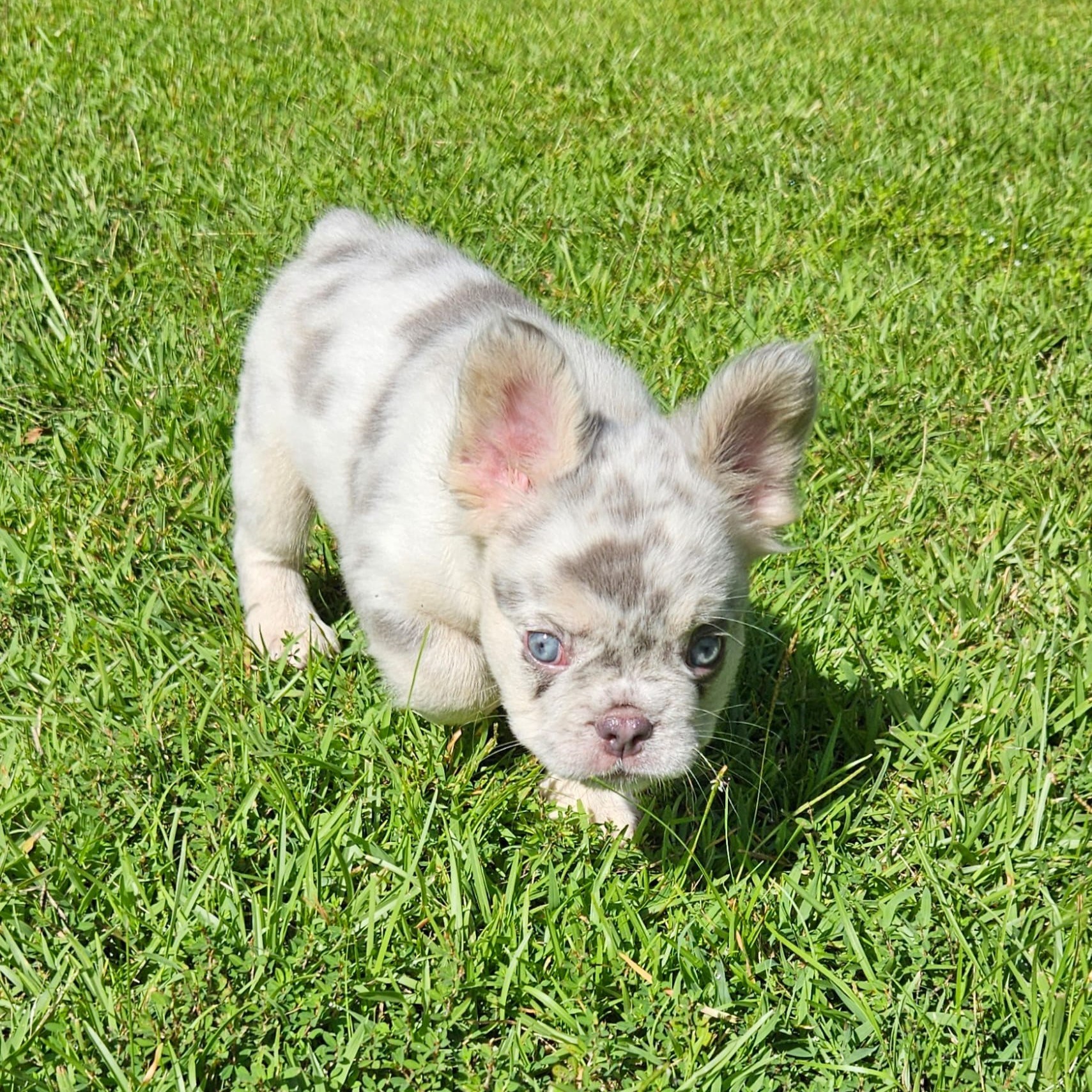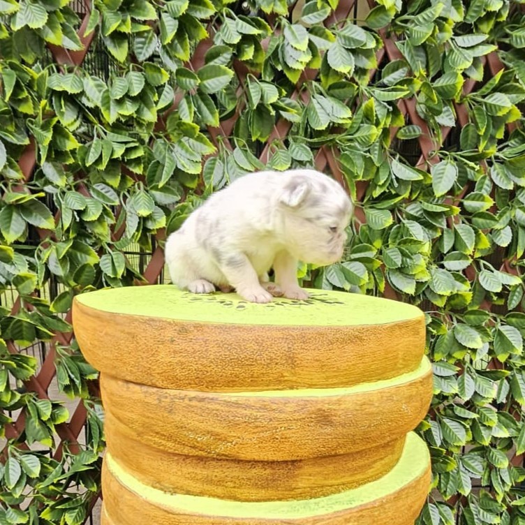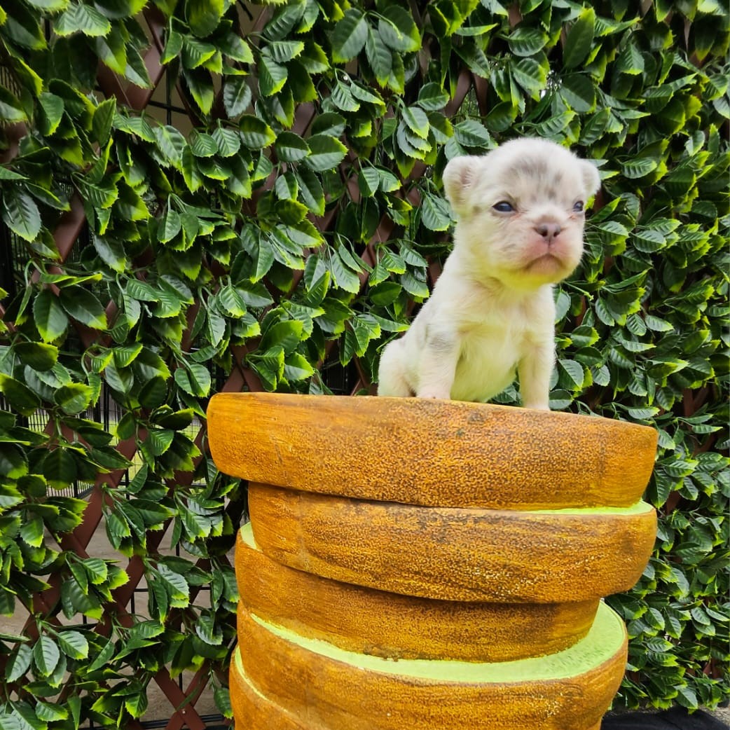 Buttercup X Redhot’s baby.“a dapper little heartbreaker in a white coat with speckles of charm!”