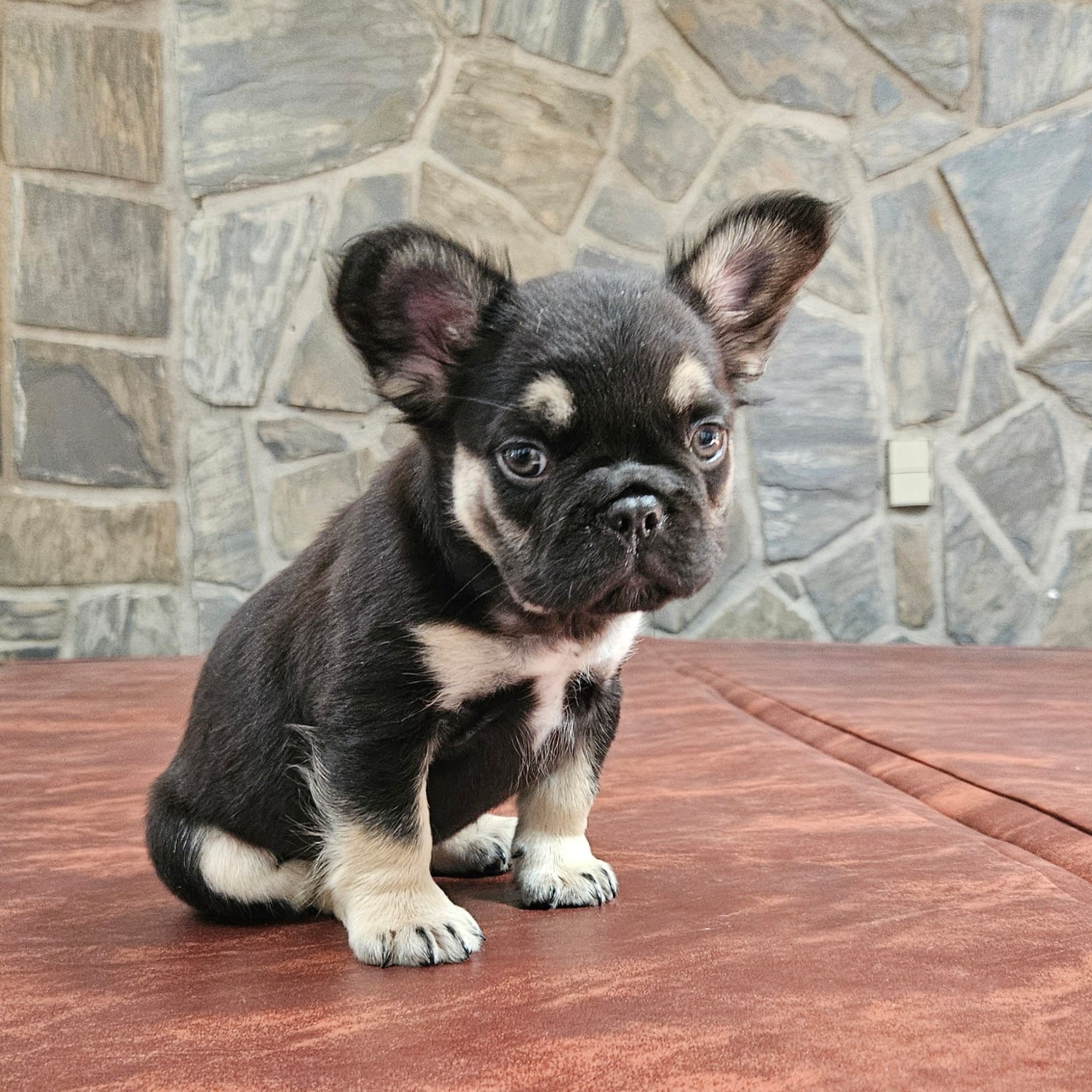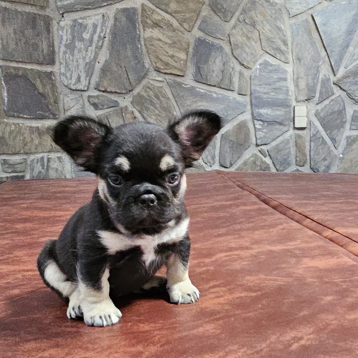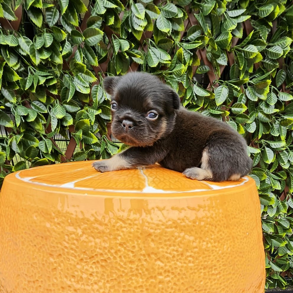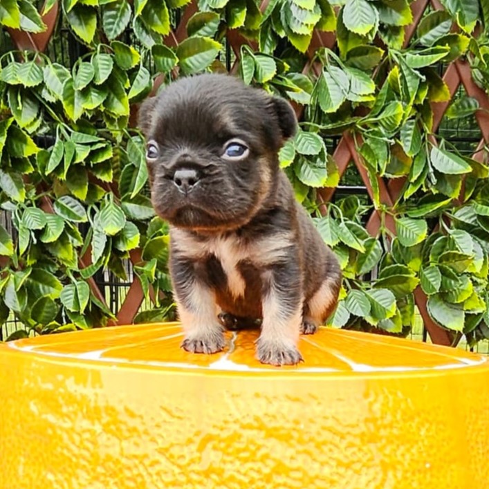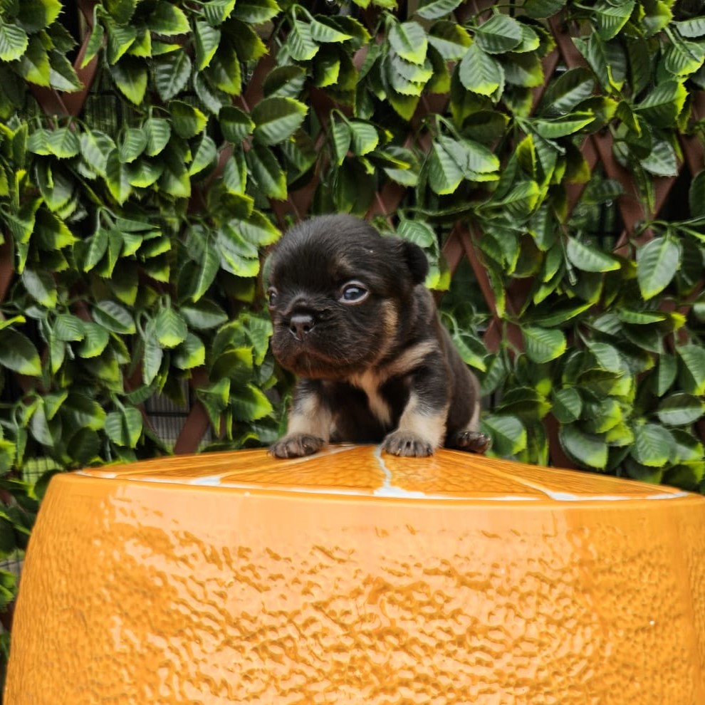 Buttercup X Redhot’s baby.“a tiny Frenchie diva wrapped in velvet black, born to steal hearts and snacks!”