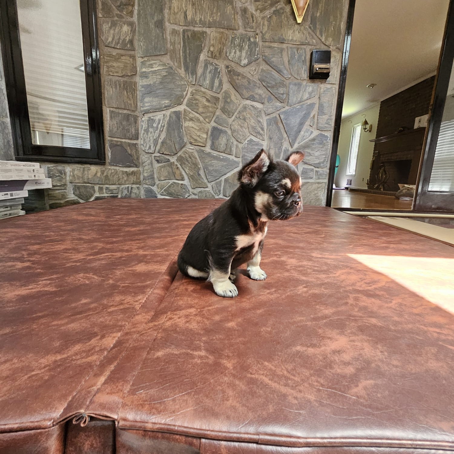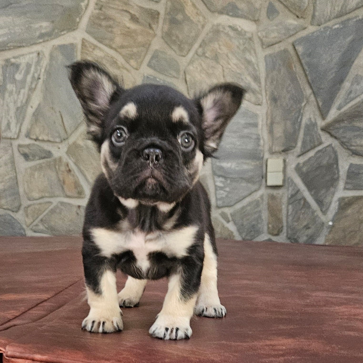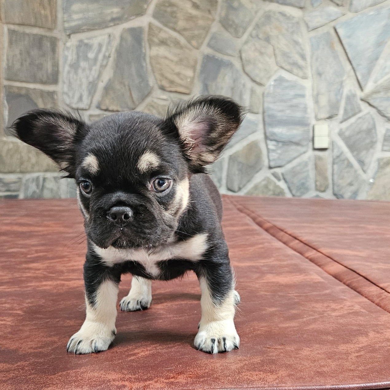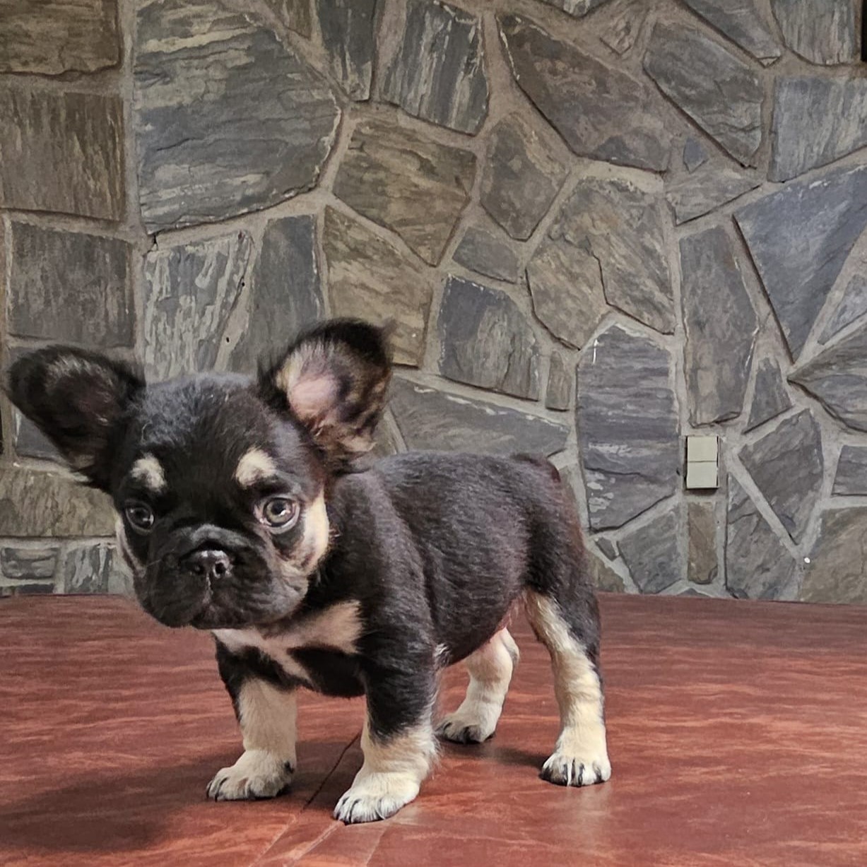 Buttercup X Redhot’s baby.“a tiny Frenchie diva wrapped in velvet black, born to steal hearts and snacks!”