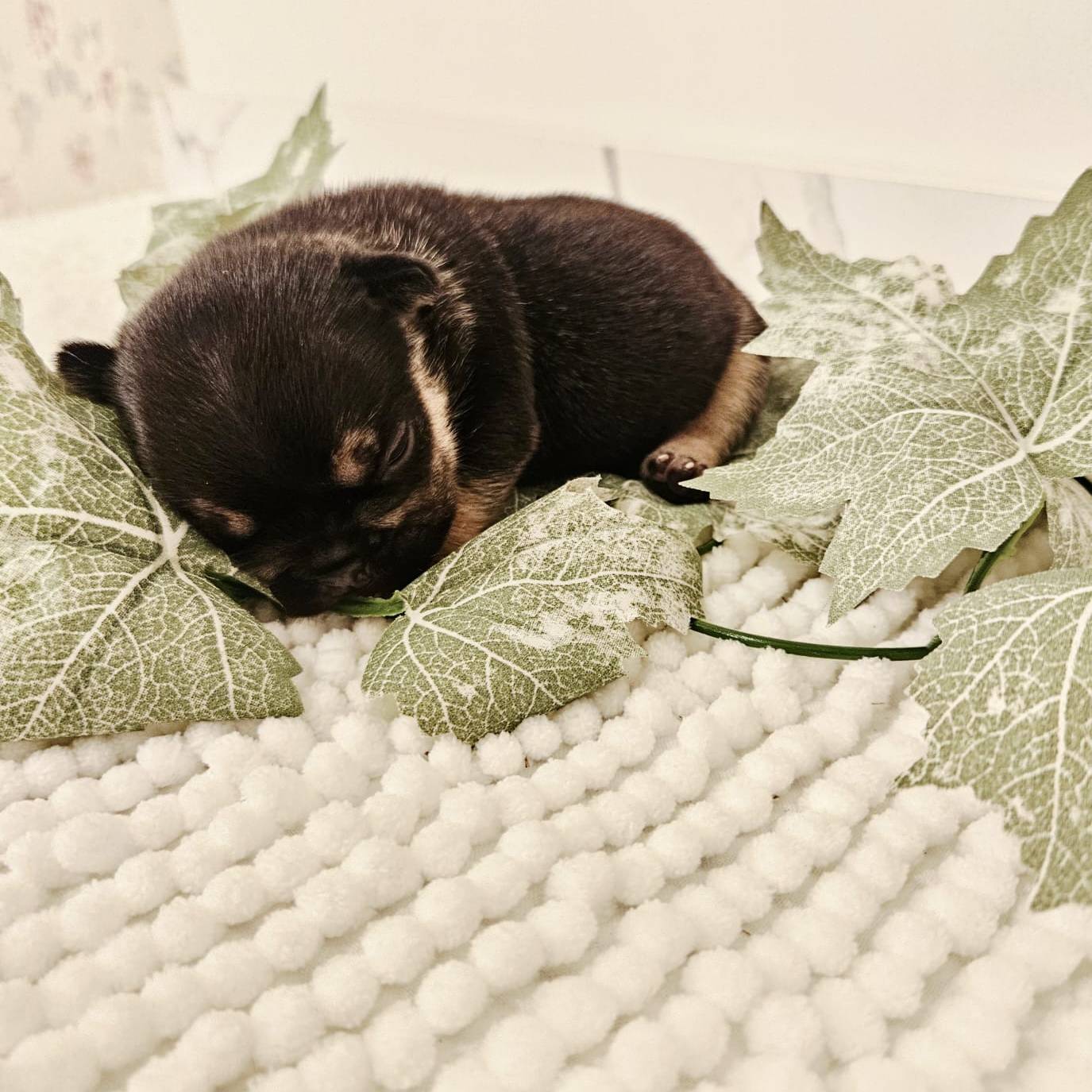 Buttercup X Redhot’s baby.“a handsome little gentleman in rich mocha and cream, as sweet as he is smooth.”